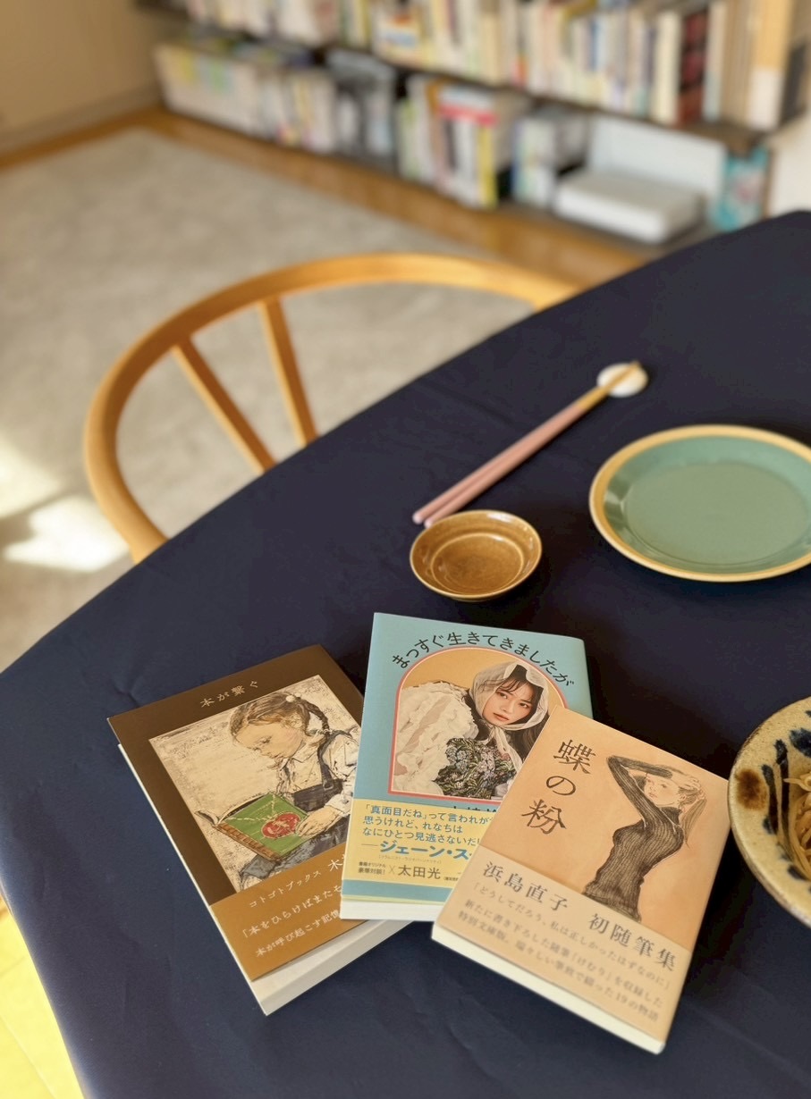 浜島直子さん、山崎怜奈さんとはそれぞれ仕事をきっかけに出会い、以来、親しくさせていただいている。そして今年は9月に山崎さんの『まっすぐ生きてきましたが』が、10月に浜島さんの『蝶の粉 改訂文庫版』が、そして11月に拙著『本が繋ぐ』が発売したこともあり、互いに祝しねぎらおうと、我が家に招いて会をひらいたのだった。