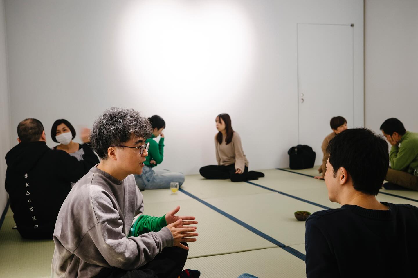 ゆかいワークショップ「声に触れる」企画内で開催されている「星野概念のメンタルヘルススーパー銭湯」での風景。