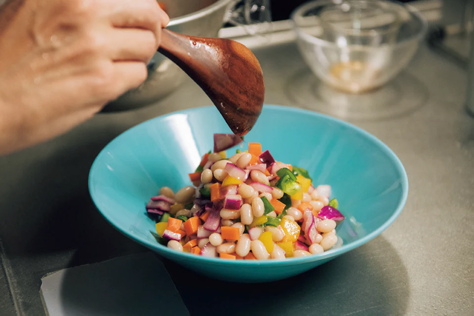 「理由はいくつかあって、まずは体調面。身体の倦怠感が長く続いた時期があり、食べ物を変えてみようと思ったのが一つです。あと、日々の暮らしのなかで、こんなにも毎日お肉を食べる必要があるのかなとふと疑問に思ったんですよね。特に小学生の息子が喜ぶ料理を作っていると、自然と動物性のタンパク質や脂質が多くなる。毎日スーパーに並ぶお肉の安さに疑問を持ち、畜産の環境負荷の高さも知ったことから、行動を変えようかなと思い至りました」