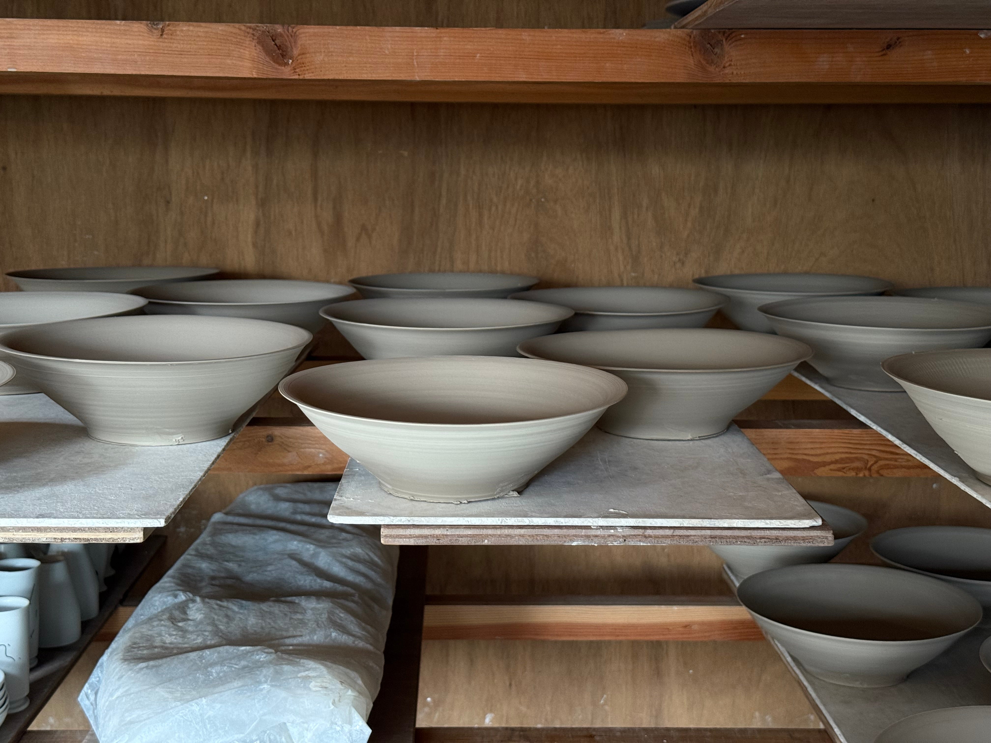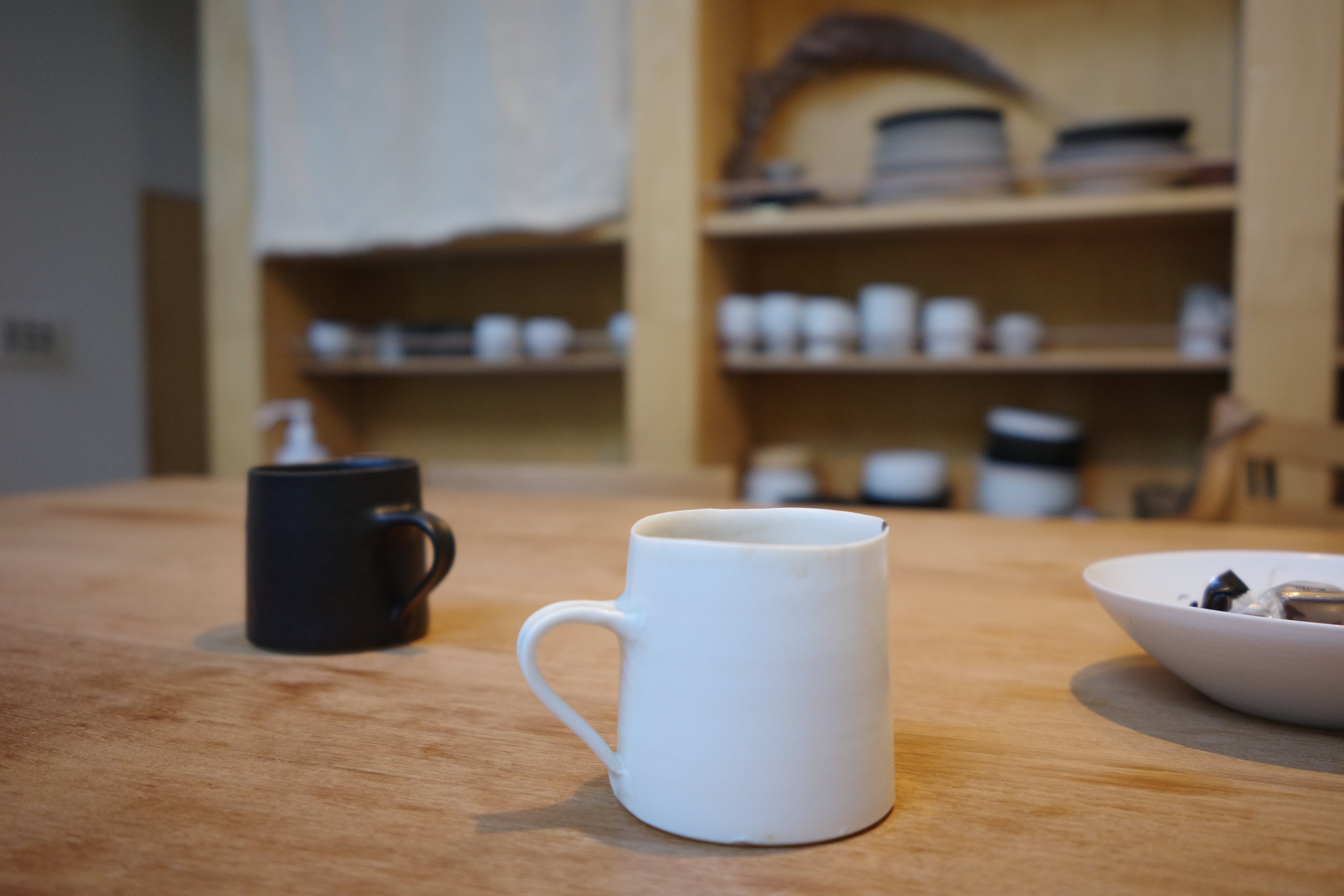 実は展示に関しても、あらかじめテーマや企画を決めることはほとんどないんです。とにかく器をひとつひとつ焼き上げて、それが溜まったタイミング、月1回くらいのペースで展示を実施しているんです。もちろん、ろくろを回す時には「この間はカップをたくさん作ったから今度は皿を多めにしようかな」とか「こないだは小さいものを多めに作ったから、今度は大きめのモノを多めにしようかな」といったことを考えている。ただ、考えるとしてもその程度。あとは日々の自分の気持ちに従って創作を進めていきます。