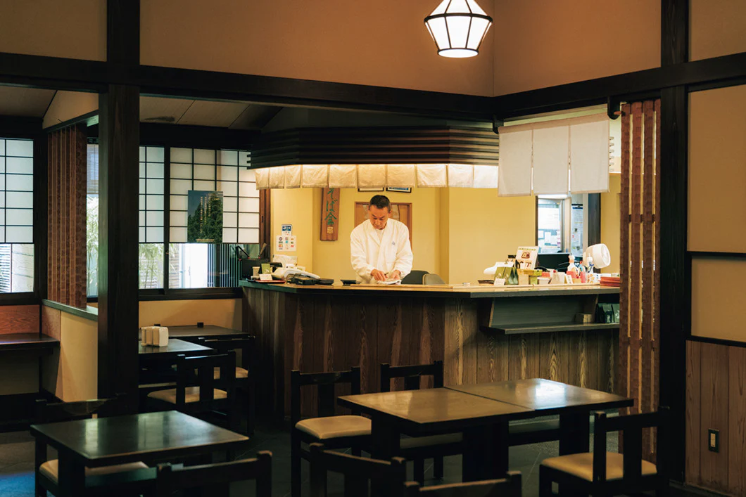 わさびは蕎麦につけて、つゆをフレッシュに保つ。麺は先をほんの少し、つゆに浸すだけ。今では当たり前にやっている「在」ではない「粋」なスタイルを、森岡さんは愛している。