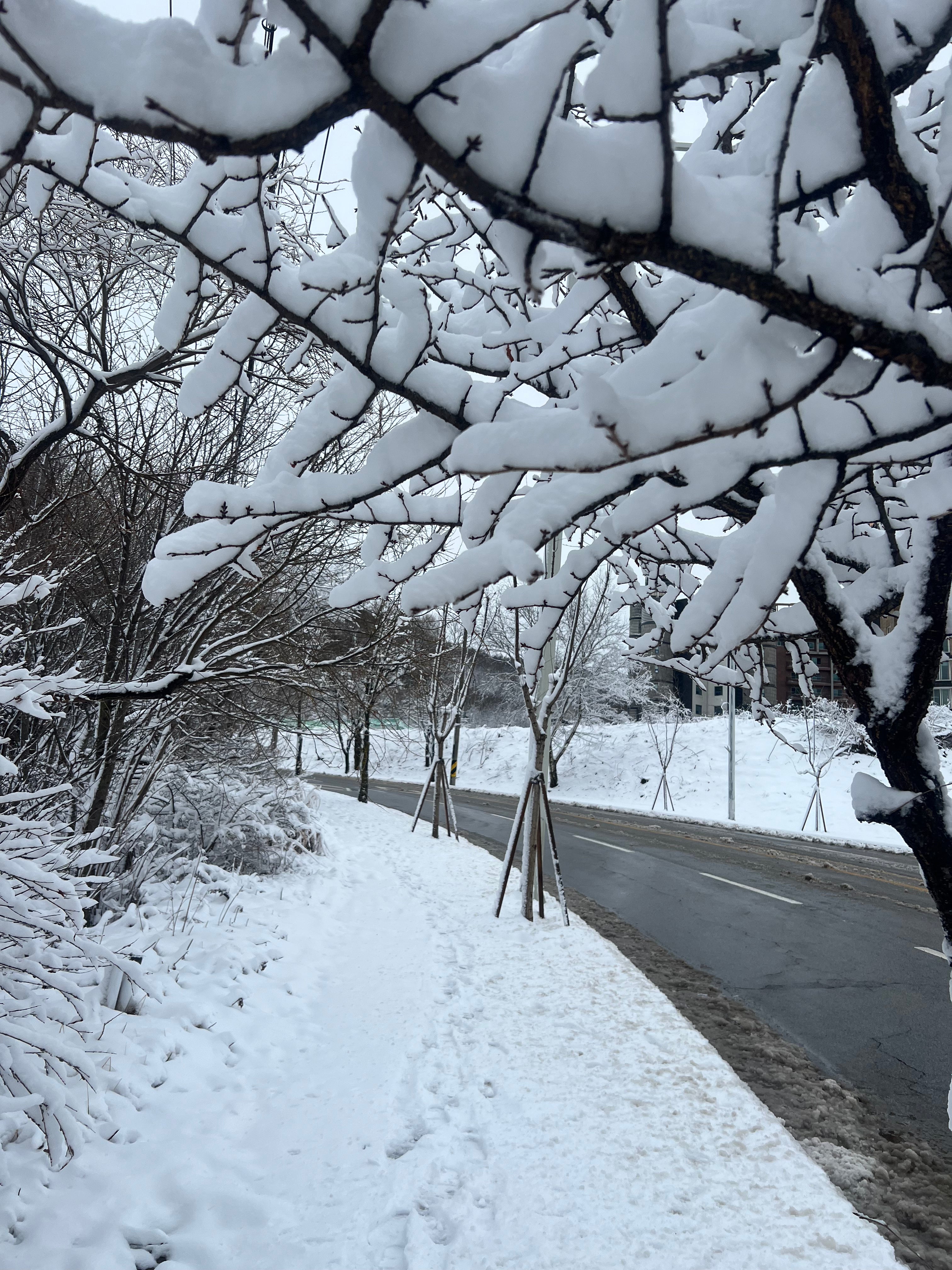 あまりの寒さにどこかにコーヒー屋さんはないかなとNAVER Mapで探すと、一軒だけ出てきたので行ってみる。残念ながらまだ空いていなかったが、中にスタッフらしき女性がいたのでダメもとで「コーヒーは買えますか?」と聞いたところ、オープンはしていないけど外は雪だし仕方ないわね、作ってあげる、というような返答をもらい、しばし待つ。こういうルール外の対応をしてくれるのも韓国っぽい気がする。