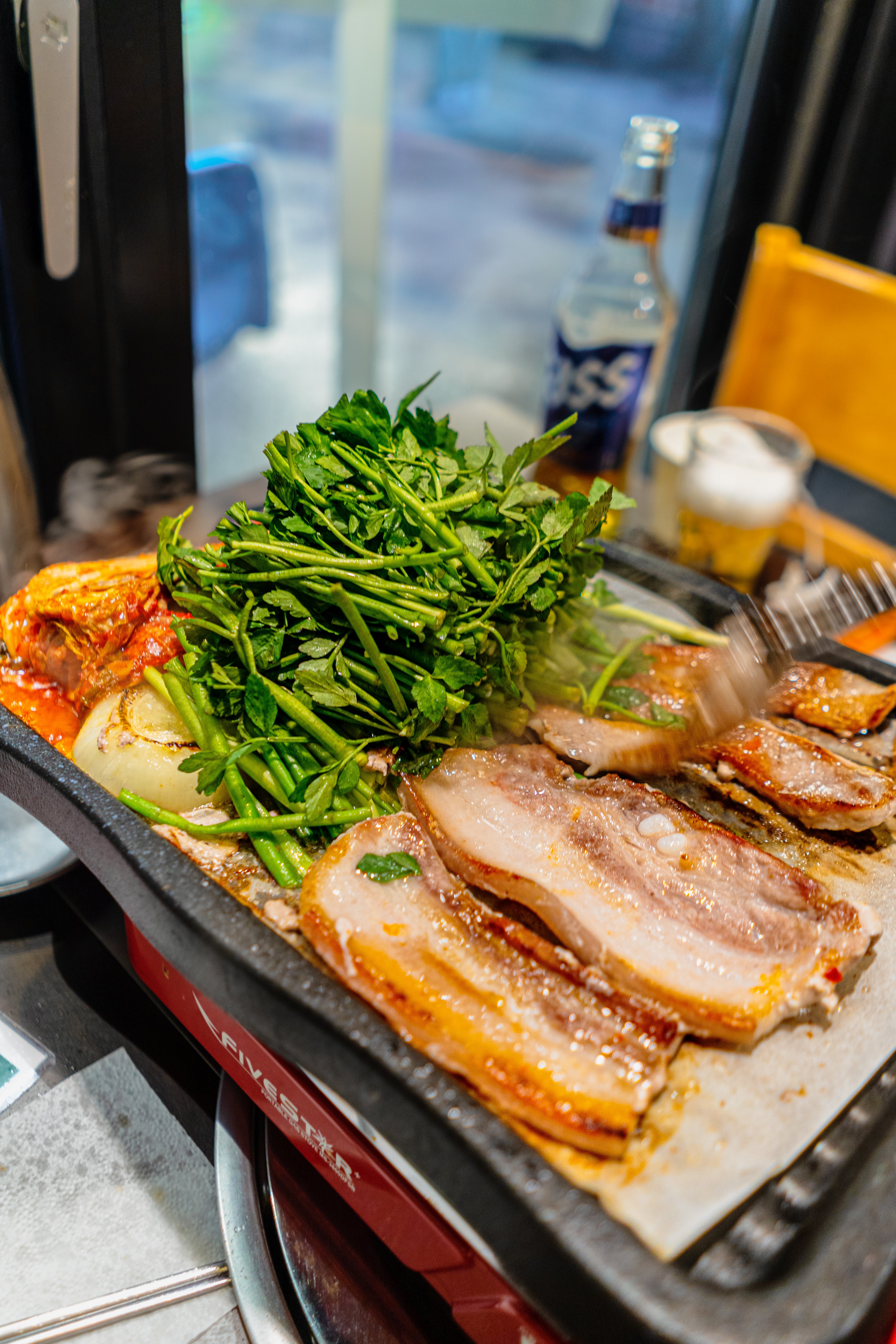 近くの食堂で温かいスープご飯を食べ(すぐに出てくる温かいご飯がスタジオの近くにあるのも最高)、パジュにある他のスタジオで行われている撮影の見学やインタビュー取材などもさせてもらい、ソウルに帰って晩ご飯を食べた。友人が調べてくれたミナリ=せりの焼肉屋さんに行き、その日の感動を話し合いながらもりもり焼肉を食べた。産後まだ3ヶ月ぐらいだったので、出産以来初めて子供と離れて食べるご飯と、久しぶりに飲んだビールはしみじみ美味しかった。