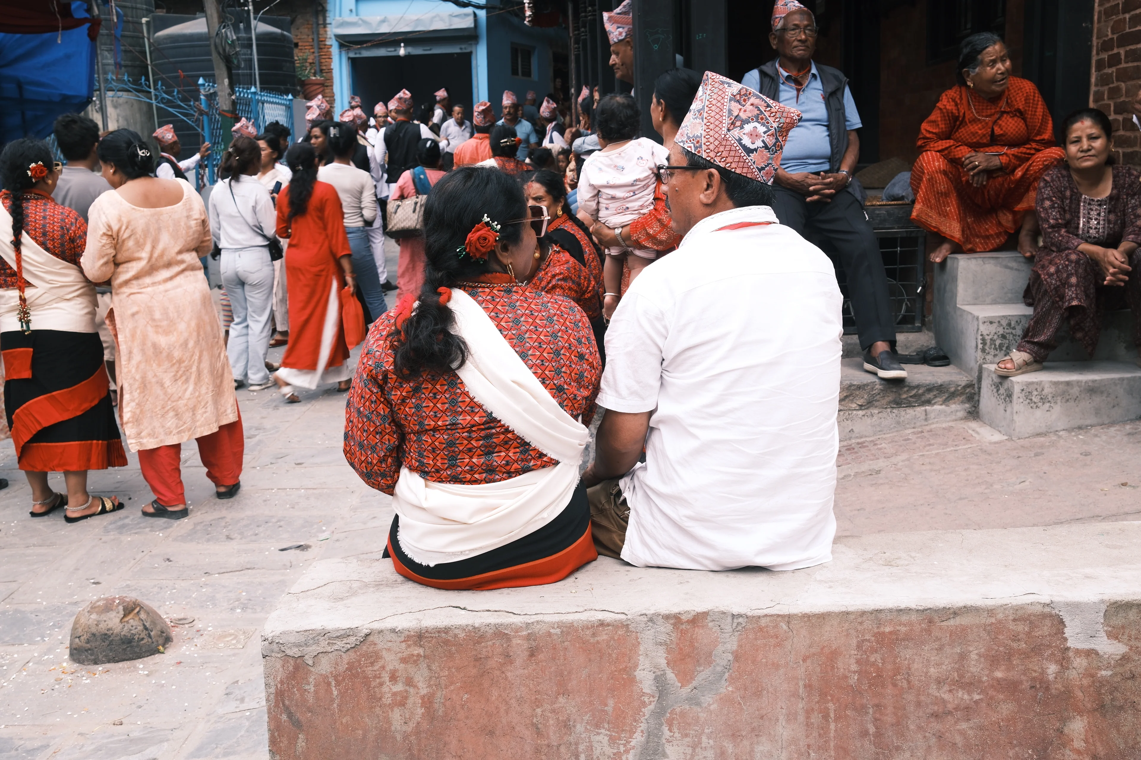この街によく似合う、赤い民族衣装。