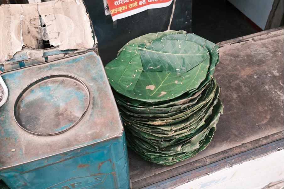 葉っぱで作られた皿。
