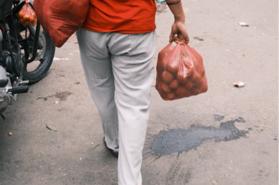 朝市の帰り道。