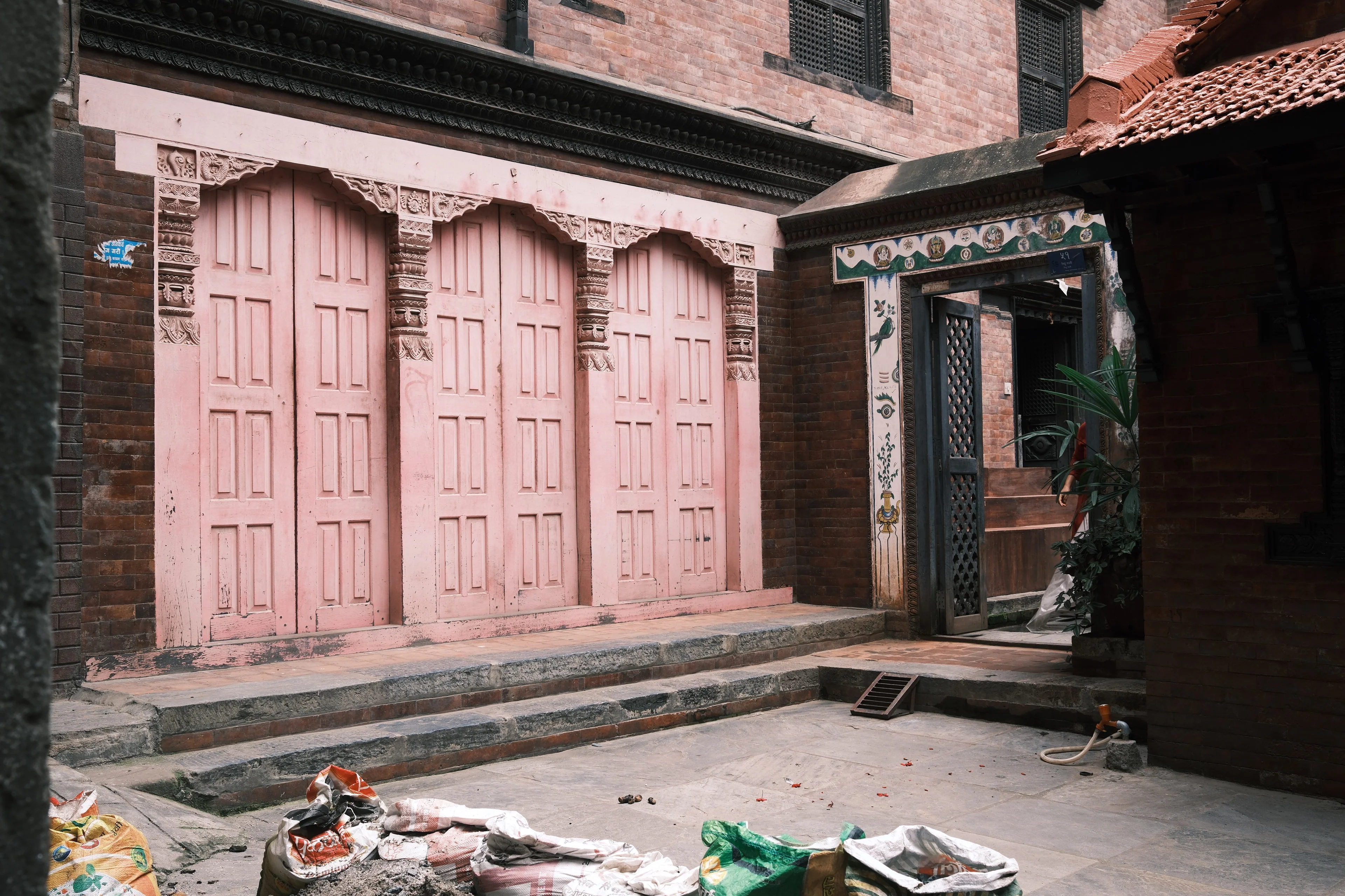 街全体が暖かみのある色合い。建具のディテールが可愛らしく、つい写真に収めたくなる。