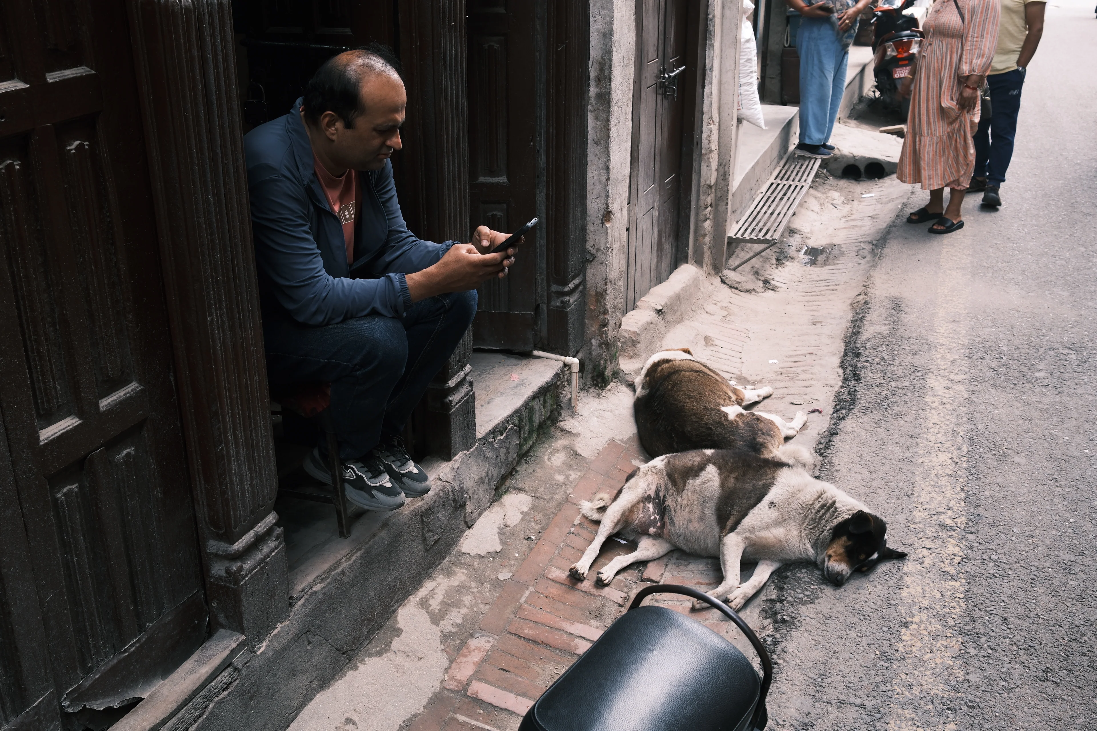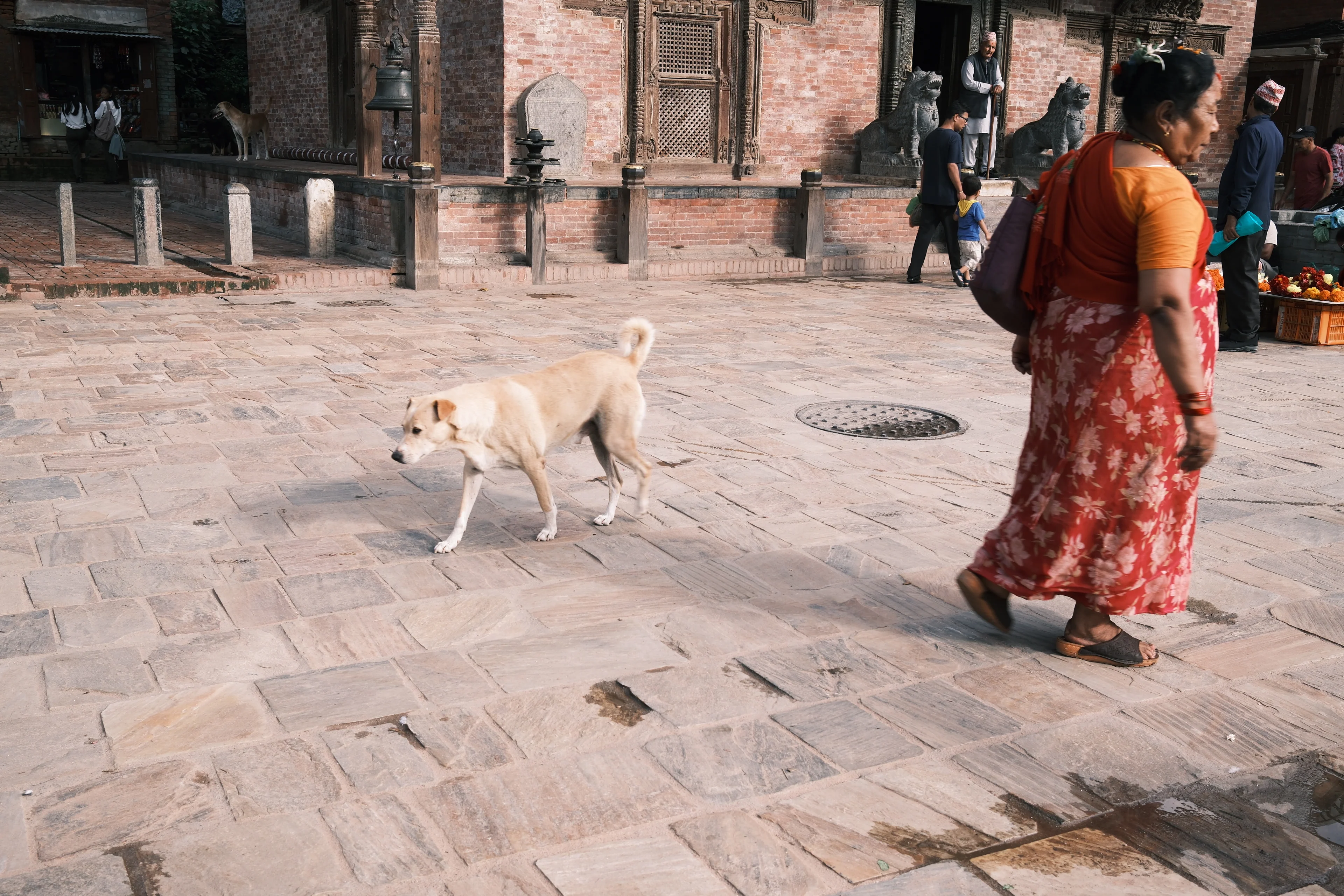 ネパールには犬がたくさんいて、道の真ん中で寝ていたり、気ままに歩き回ったりしている。街ゆく人たちもその存在を当たり前のように受け入れていて、平和な光景である。