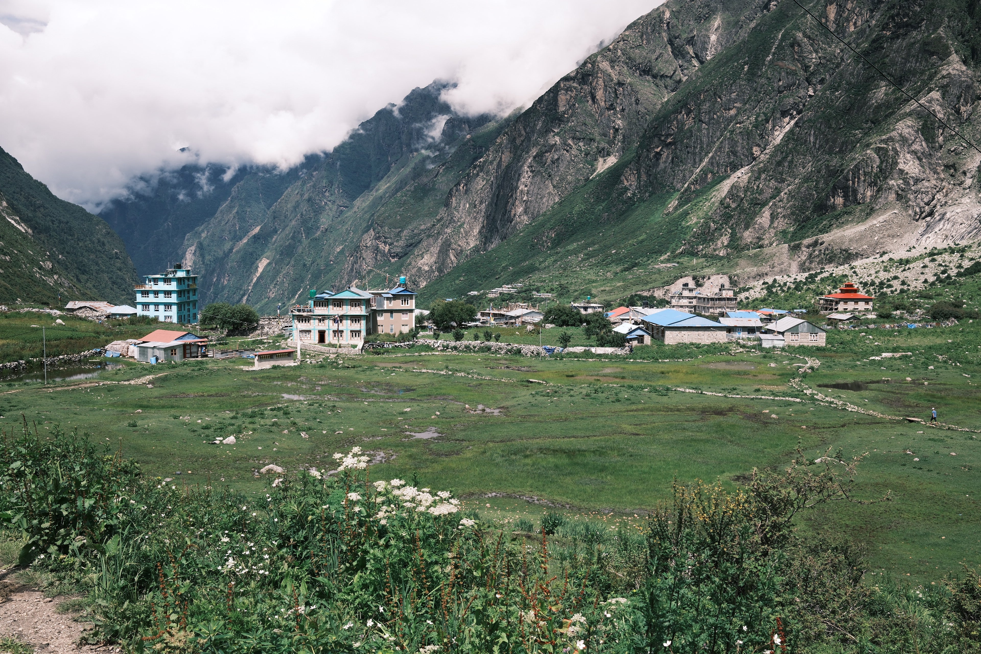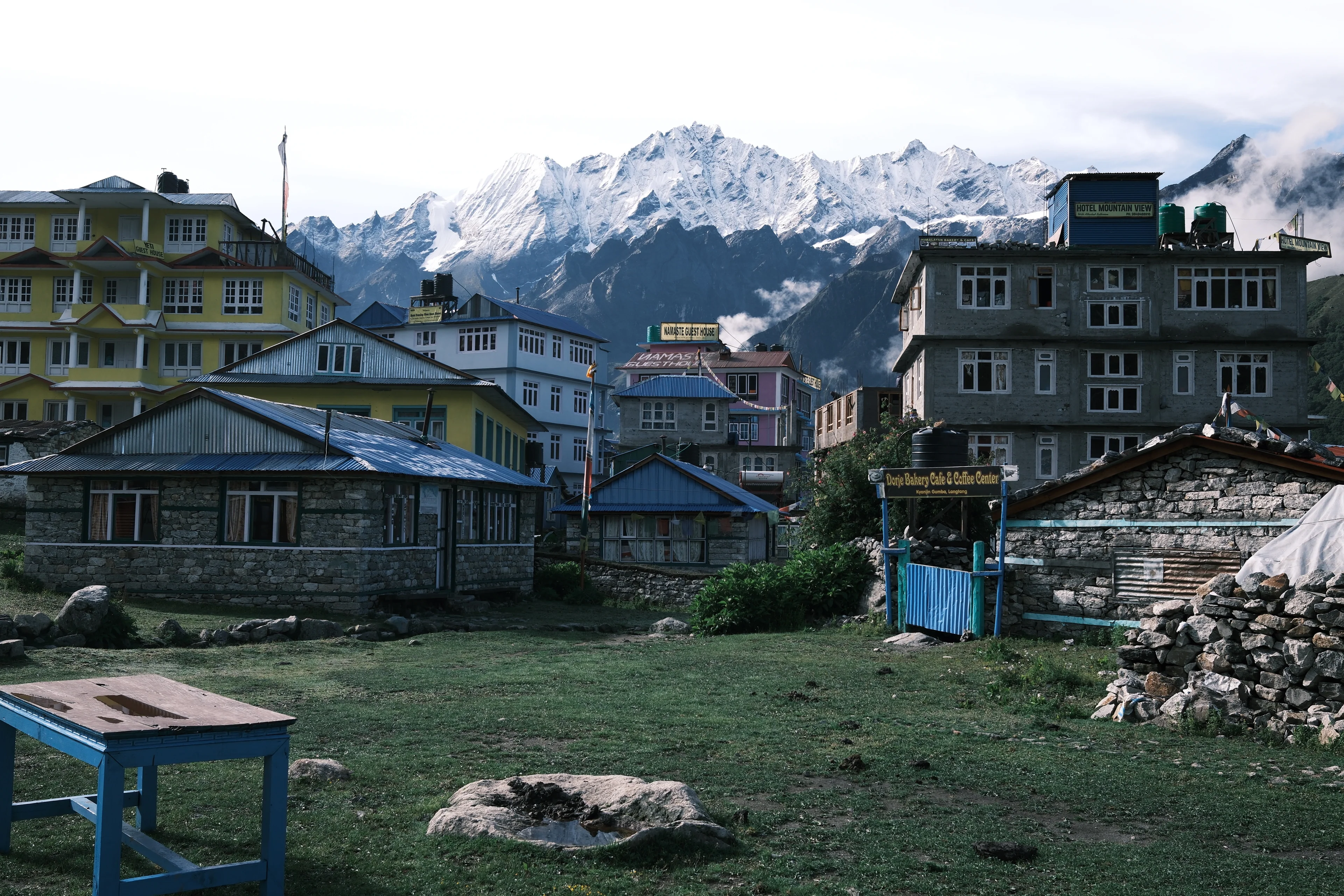 標高3,850mにあるキャンジンゴンパ。ネパールの夏は雨季だが、歩いている途中に雨に降られたのはたった1時間だけだった。