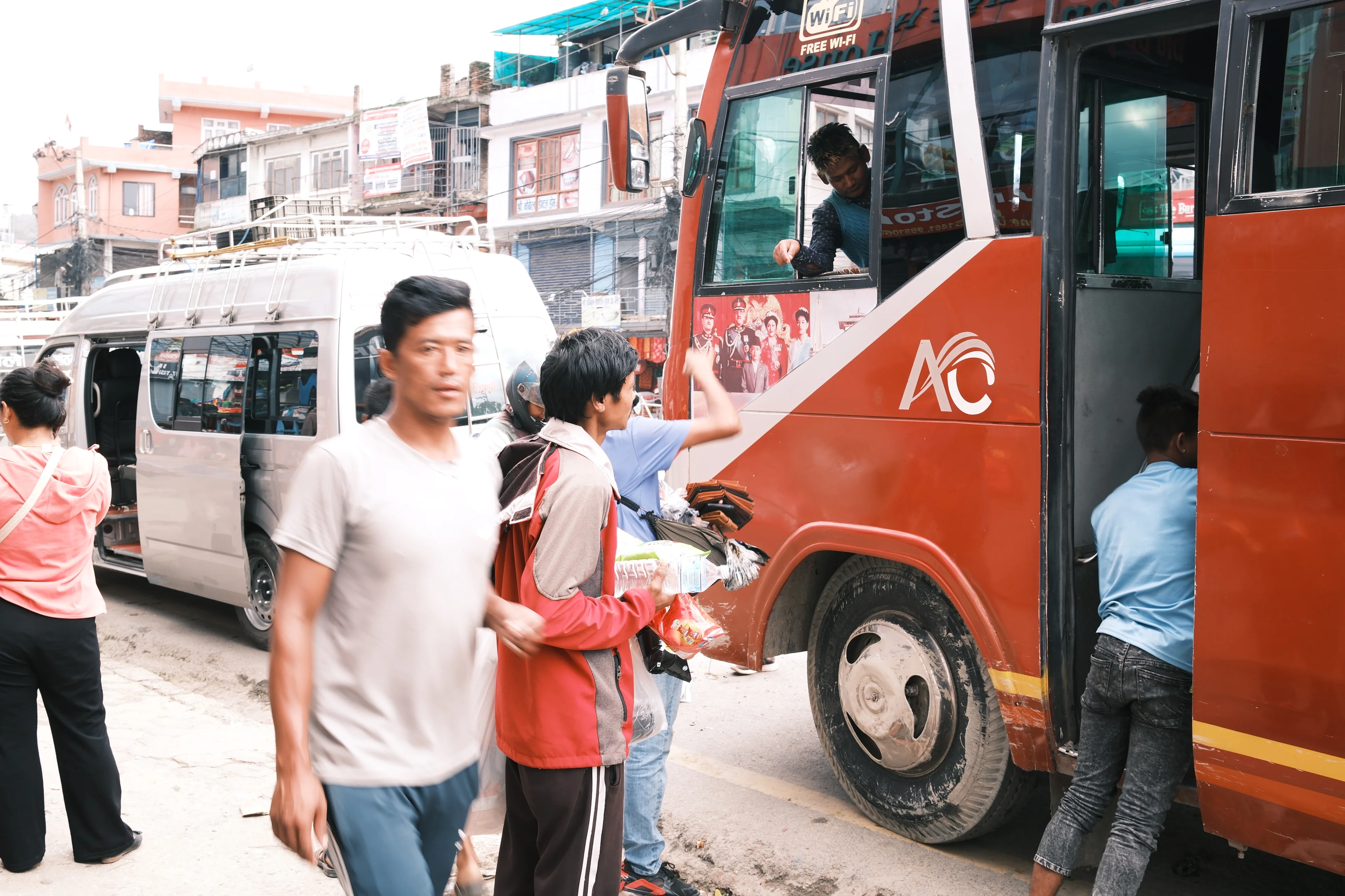 トレッキングの起点の村、シャブルベシへ向かうバス。