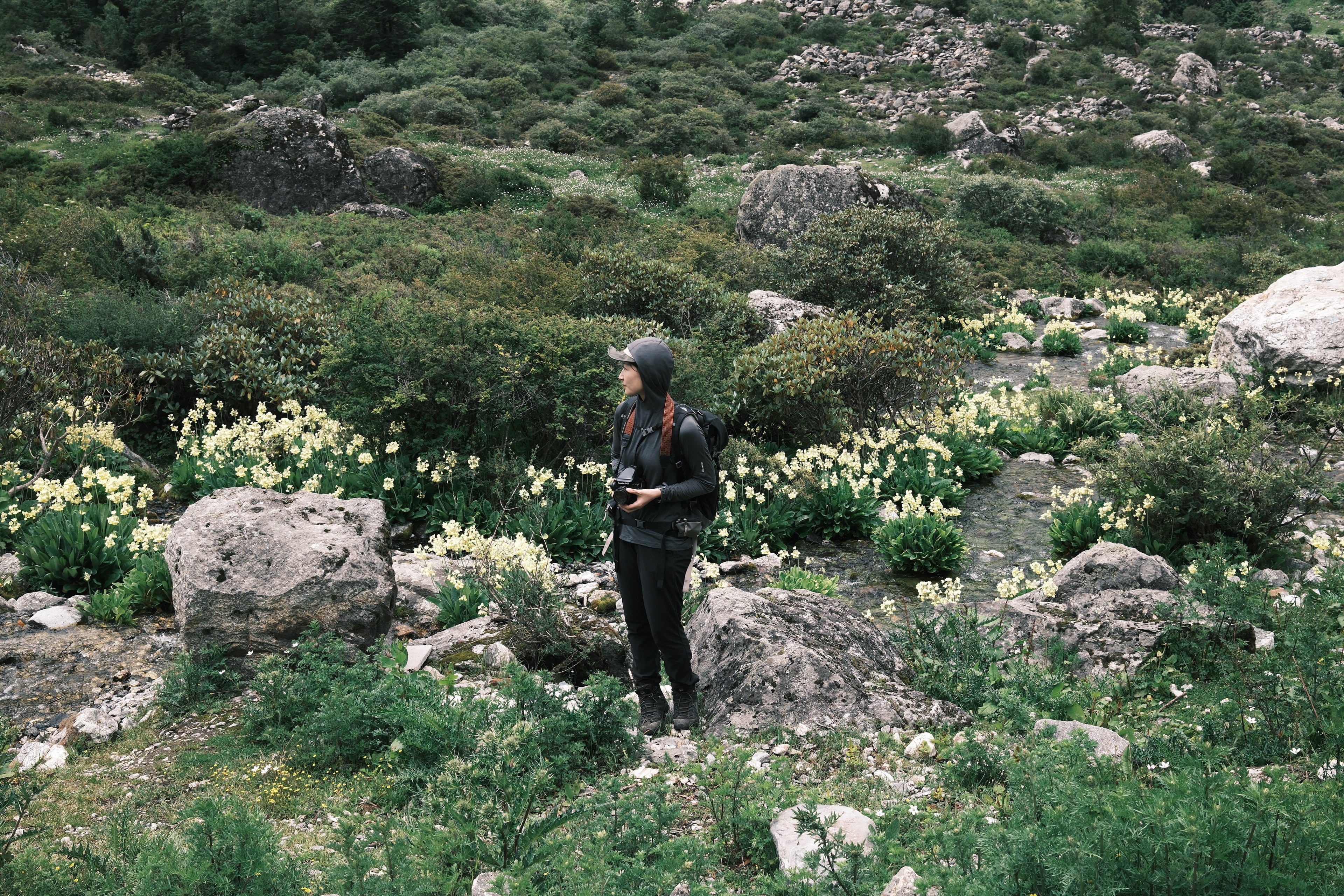 ランタン村から先は、一面の花畑が広がっていた。新しい花を見つけては写真を撮るので、なかなか前へ進めない。