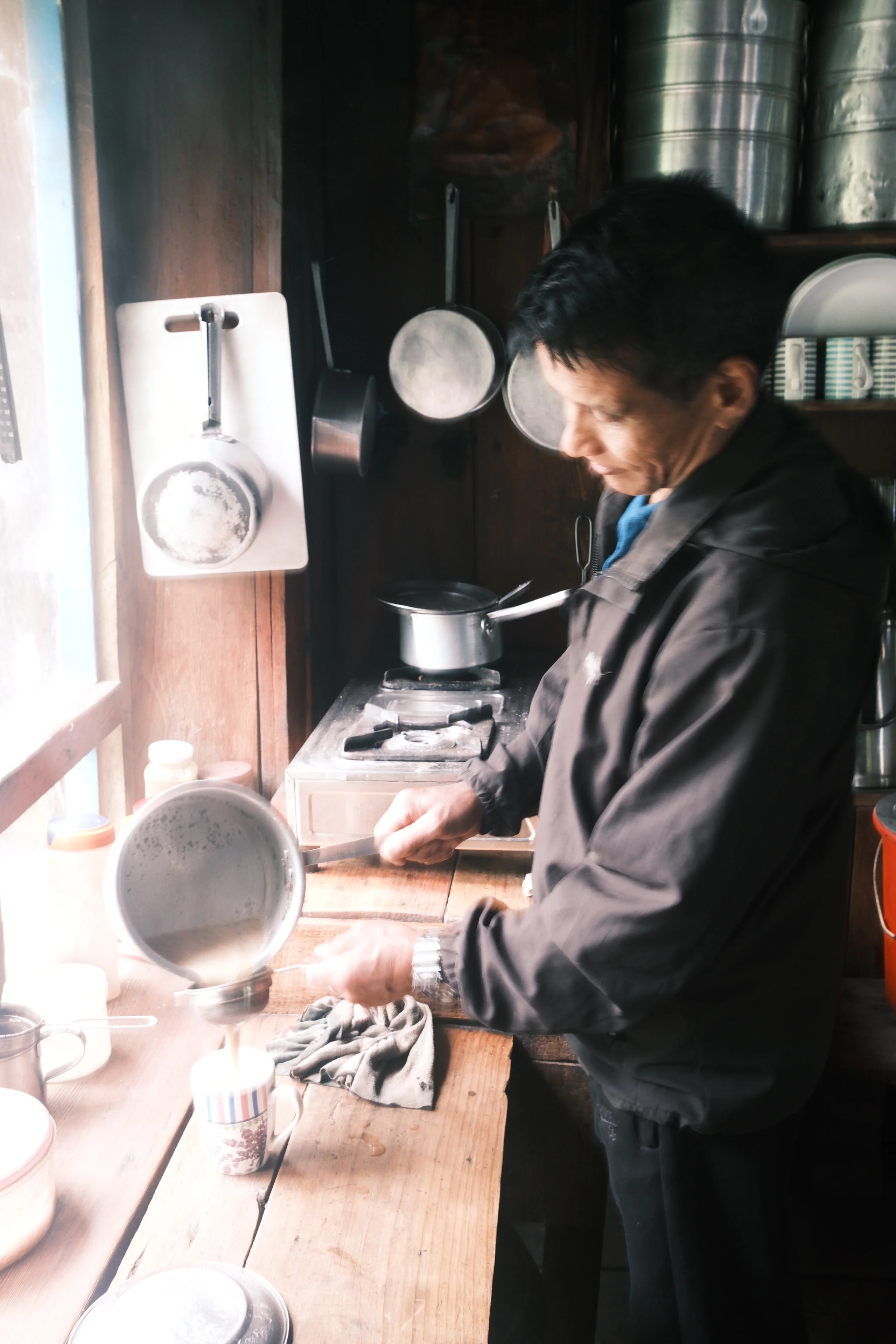 ロッジに着いたら、まずはティータイム。ミルクティーかブラックティーがお気に入りで、よく飲んだ。どちらにも砂糖をたっぷり入れる。