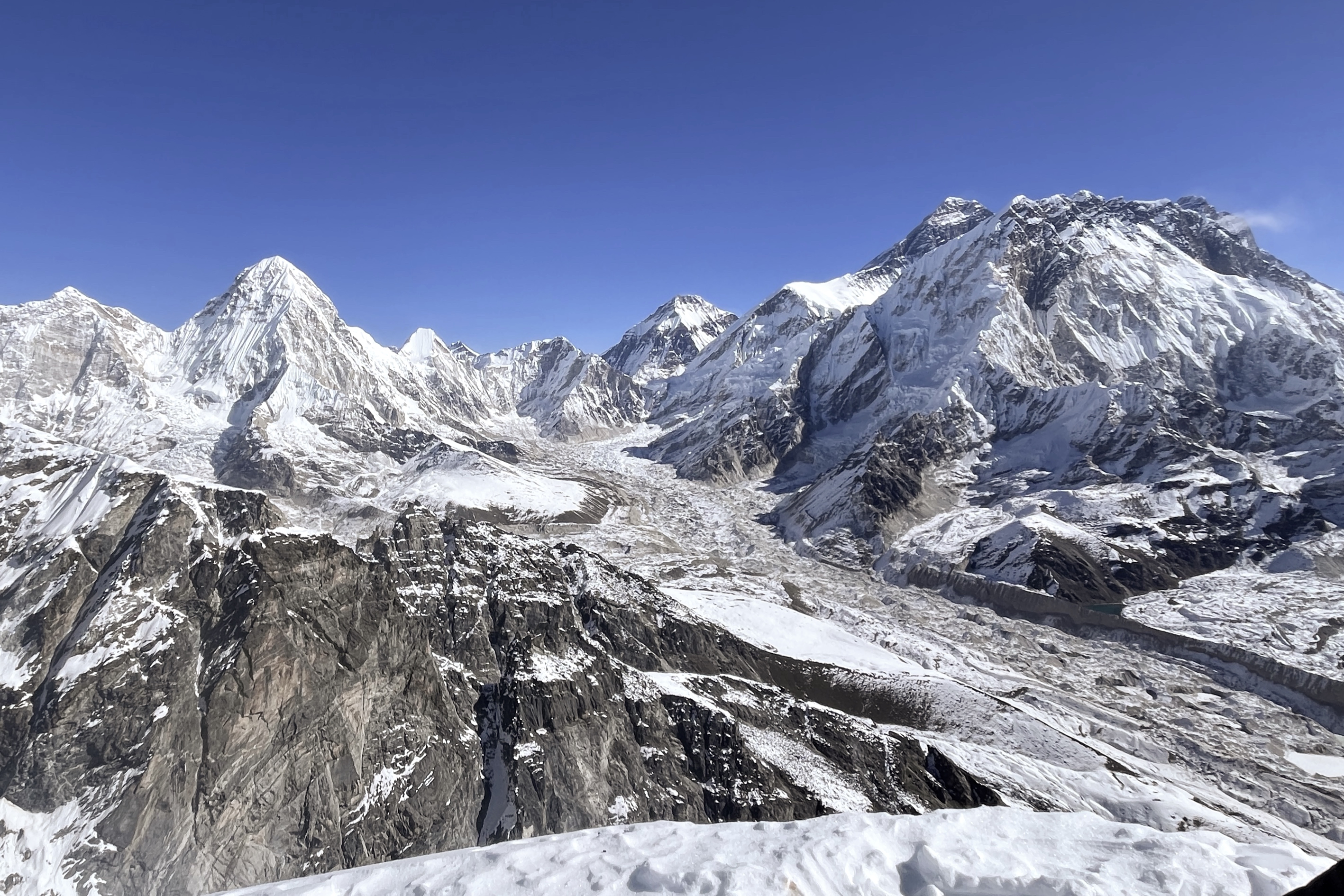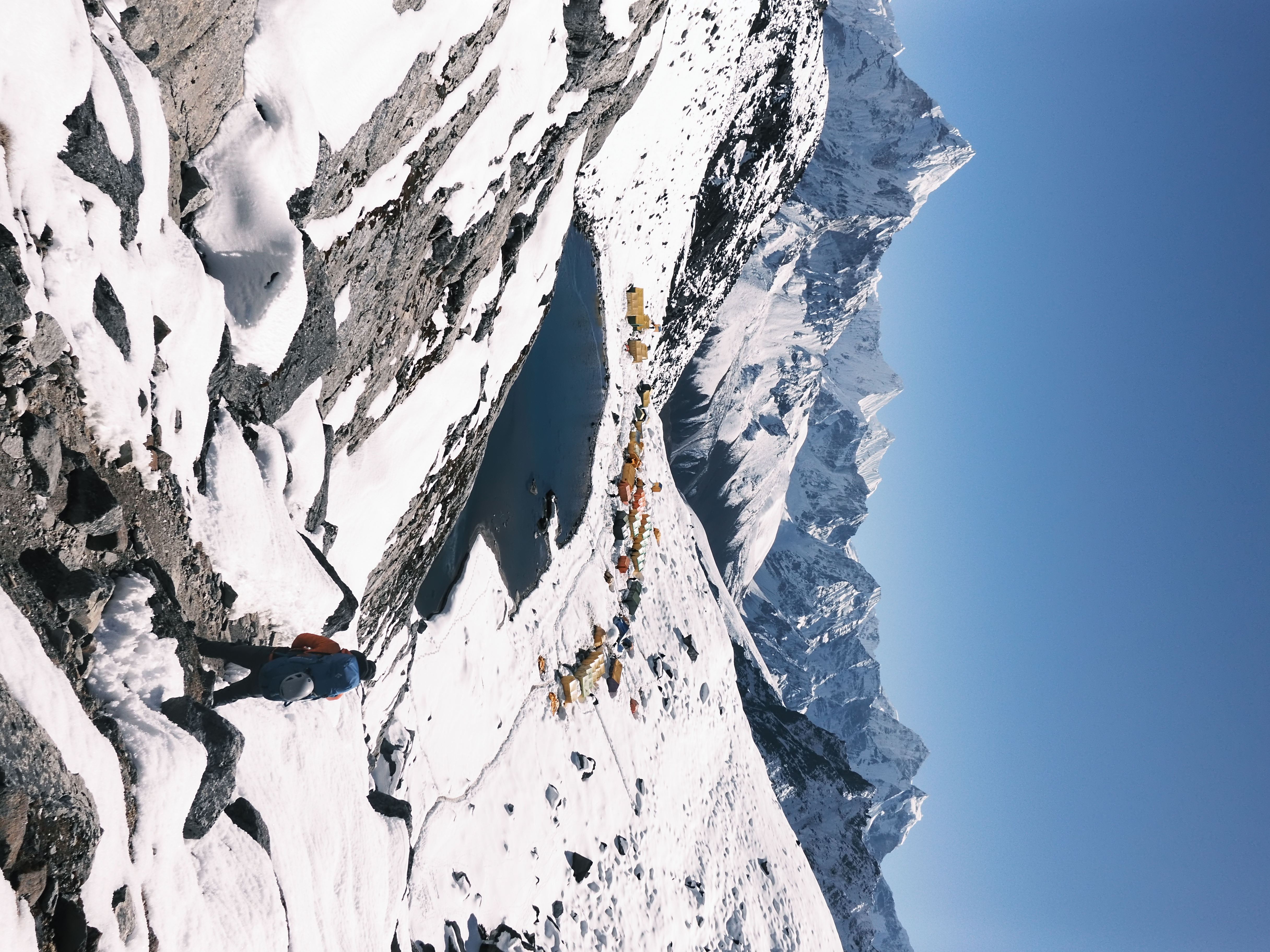 昼過ぎにロブチェハイキャンプに到着。辺りは一面の雪景色。11月にこれほど積もることは珍しいらしい。標高5200m。幸い高山病の症状は出ていない。