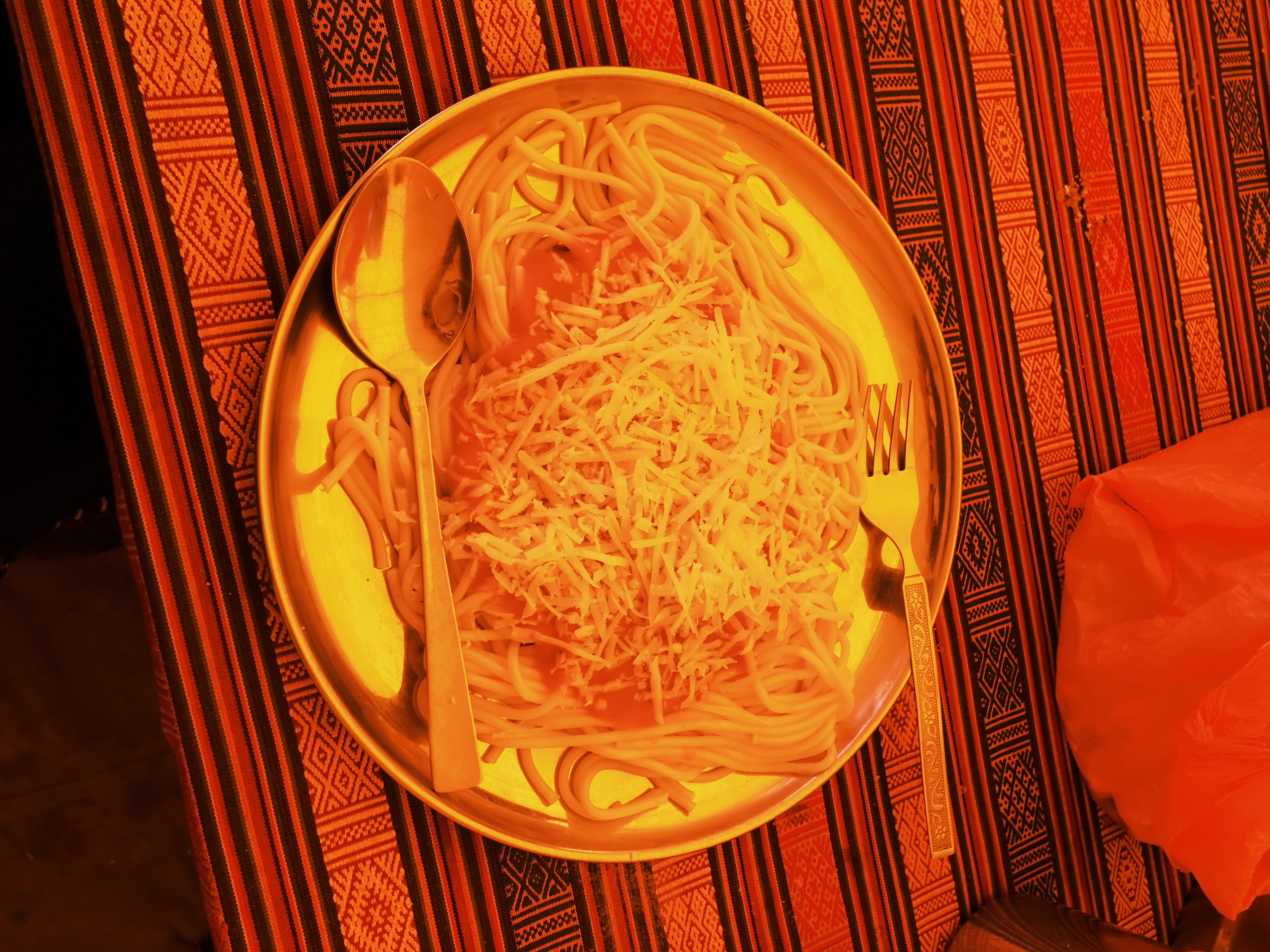 爆音でネパール語のラップミュージックをかけながら、手際よく料理をしてくれた。昼食はチーズたっぷりのトマトソースパスタ。