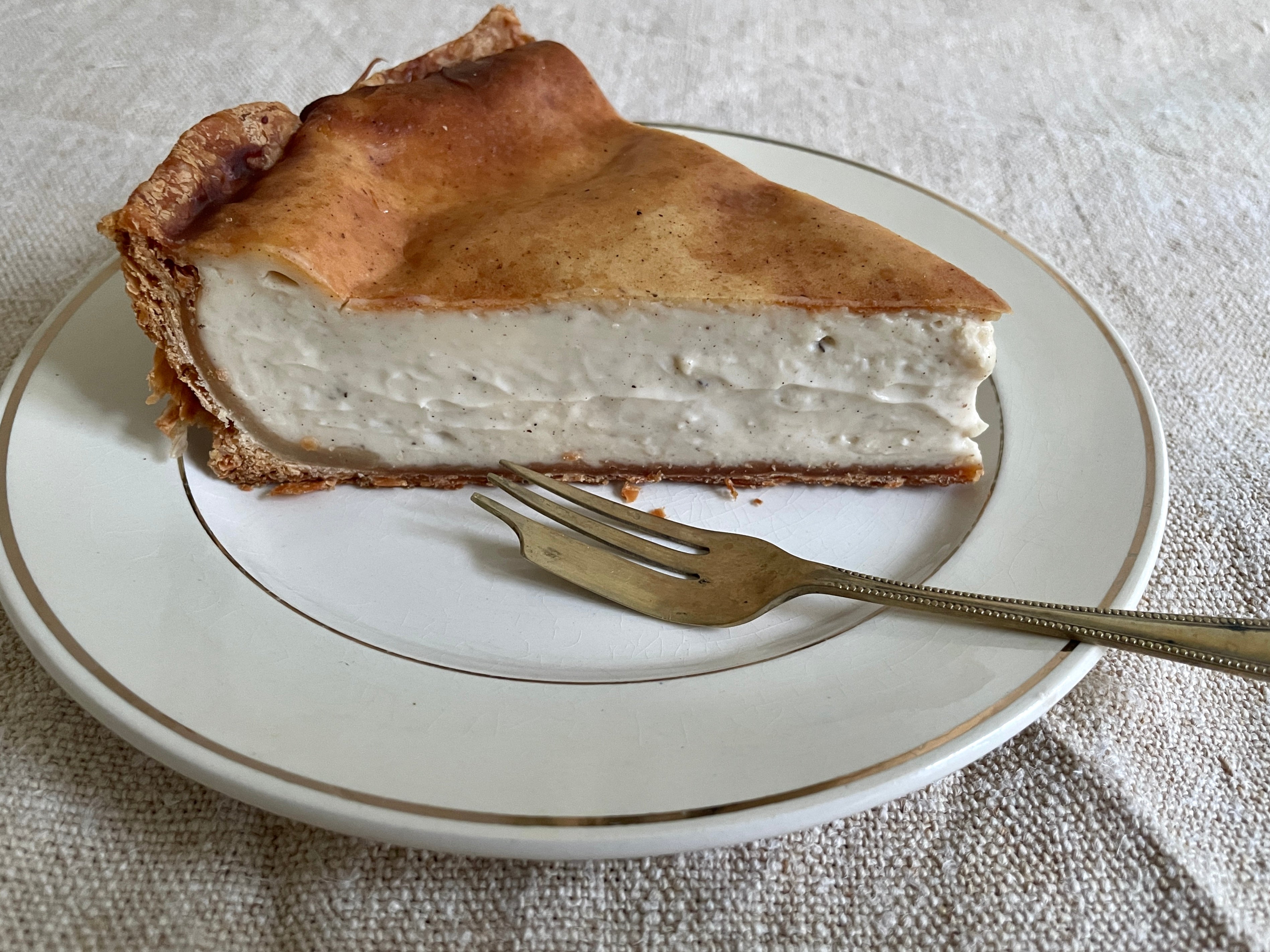 フランは、パン屋さんで作られる代表的なお菓子で、フランス人にとって最も身近なケーキではないだろうか。ともかく、好きな人が多い。チョコレートと並んで、“好きじゃない”という人に会ったことがない。でも、私は、ずっと、そのおいしさがわからなかった。どれを食べても、「うーん……」と躊躇いながら首を傾げたくなる感じだったのだ。カスタードクリームをパイ生地(店によっては、練り込み生地)に流し込んで焼くだけの至極シンプルな作りゆえに、きっと、好みの加減が、微妙なバランスの違いで左右されるんじゃないかと思う。以前は、カスタードの部分がもったりしているタイプが多くて、その要素だけでもおなかが張るのに、加えて、一人分が「ねえ、これっていつのタイミングで食べるの?」と聞きたくなるくらい、例外なく大きかった。大袈裟ではなく、それとコーヒーでランチになるくらいのボリュームだったのだ。もちろん、何度かに分けて食べればいいのだけれど、味よりも、ひょっとすると、この「いつ食べたらいいんだ一体?」という戸惑いの方が、私とフランの間に立ちはだかっていたのかもしれない。