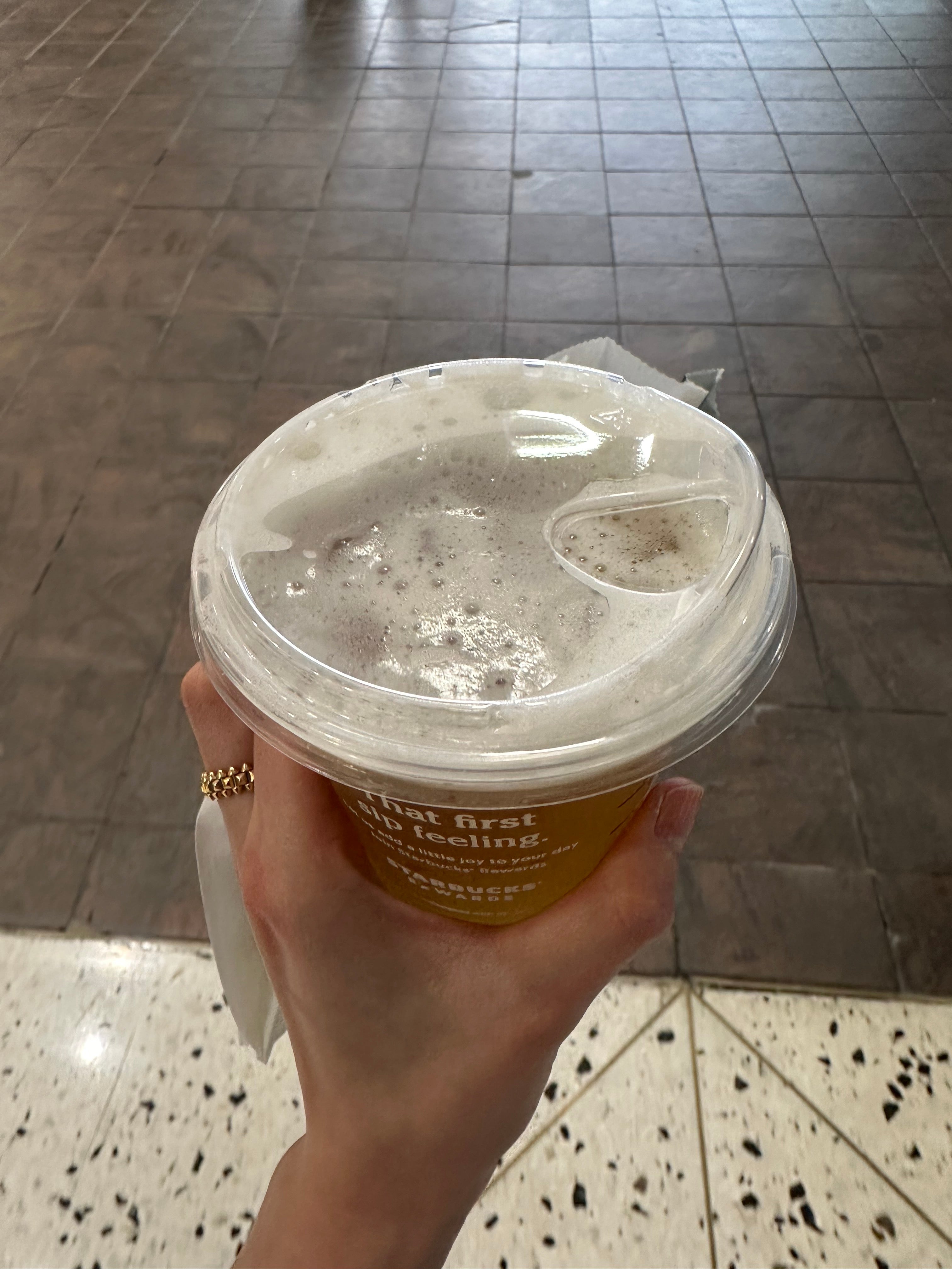 空港のコーヒー屋さんでわざわざ緑茶を頼んでいました