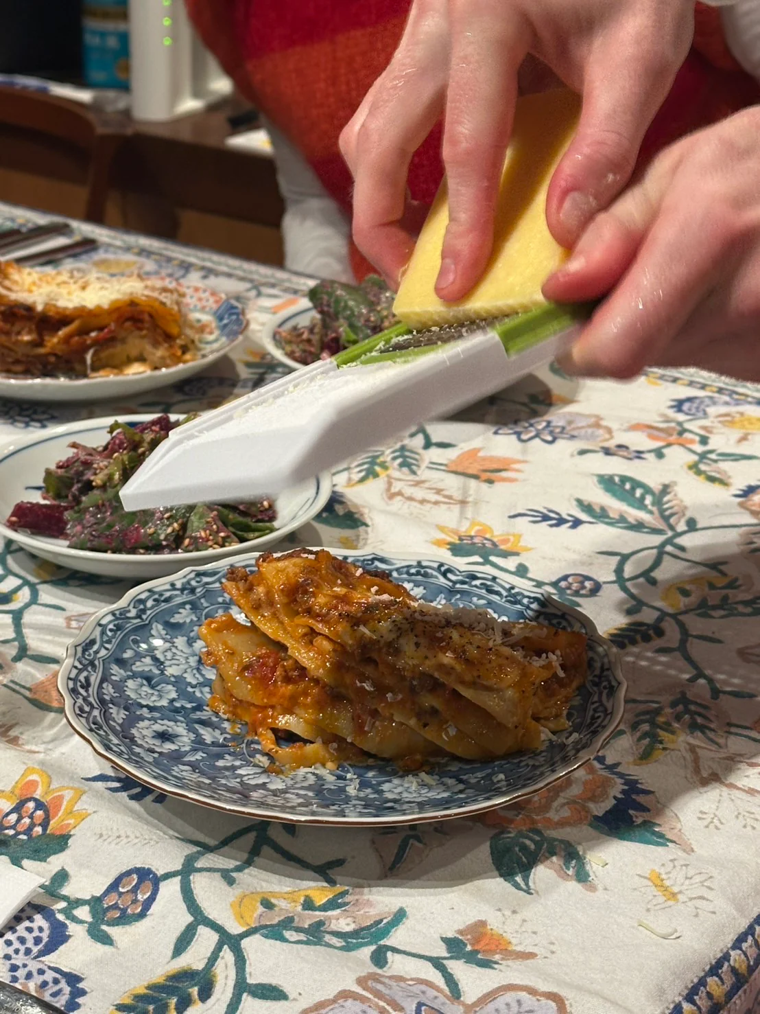 大きなラザニアをわけわけ。