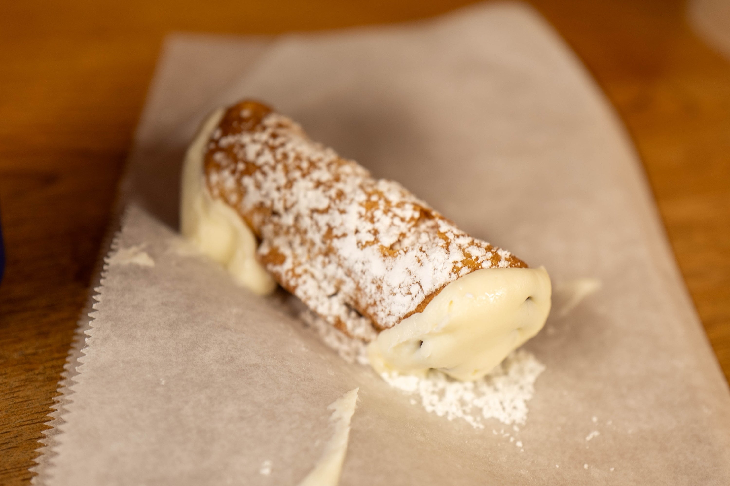 お目当てのカンノーリを売るパン屋「MADONIA BROTHERS BAKERY」は、地元の人たちで賑わっていた。スタッフの多くが女性でとてもフレンドリーだ。「ここのカンノーリがアーサーアヴェニューでいちばんおいしいのよ」とリリーは言い、「カンノーリをふたつください。いや、やっぱり4つください。それとコーヒーも」と注文した。立ったままだけど、店の中で食べれるのが良かった。というのも、カンノーリはクリームを詰めてすぐに食べるのがいちばんおいしい食べ方らしく、あまりのおいしさに、絶対もうひとつ食べたくなるから、おかわり用もちゃっかり注文したとリリーは肩をすくめた。