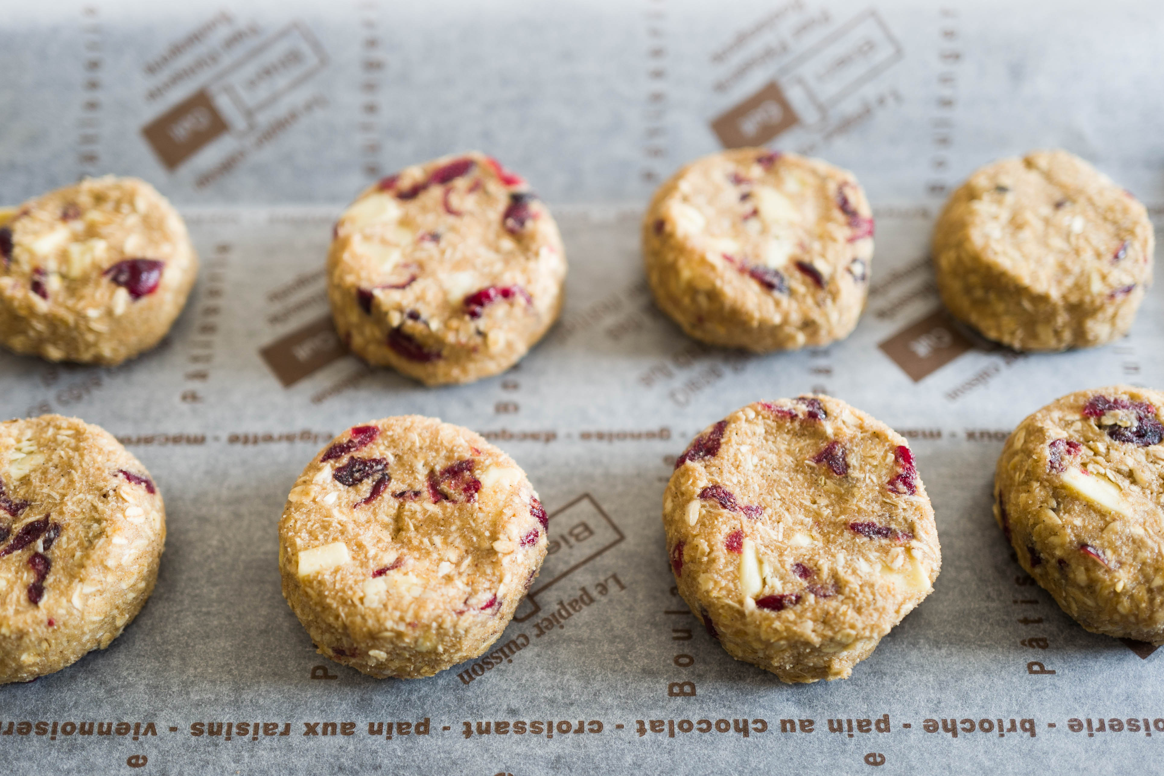 Kさんと焼いたクッキーは、レーズンとクランベリー、くだいたピーカンナッツを生地に混ぜて、手のひらに置くとちょうどいい大きさで、中はしっとりやわらかな、まさにホームメイドなクッキーだった。30枚くらいは焼いただろうか。