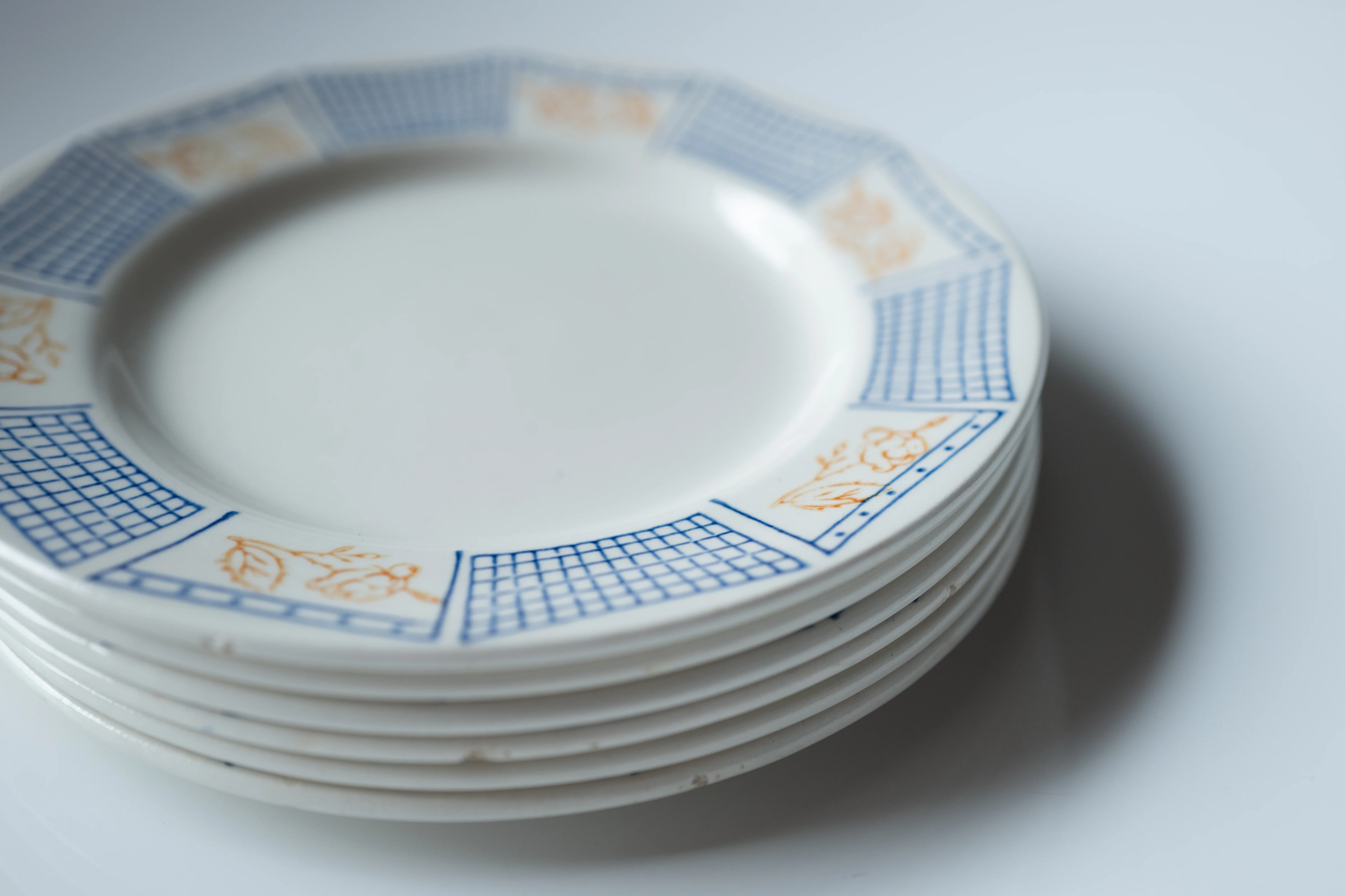 買い物といえば、パリで滞在したアパルトマンの近くにあった、こちらも女性がひとりで営むアンティーク食器屋で、ブルーとオレンジの柄がかわいらしい「ジアン」の古いデザートプレートに出会った。珍しいことに6枚がセットで揃っていた。こちらは毎日使っているけれど、そのたびに、パリで過ごしたあの日あの時がふわりふわりと蘇る。