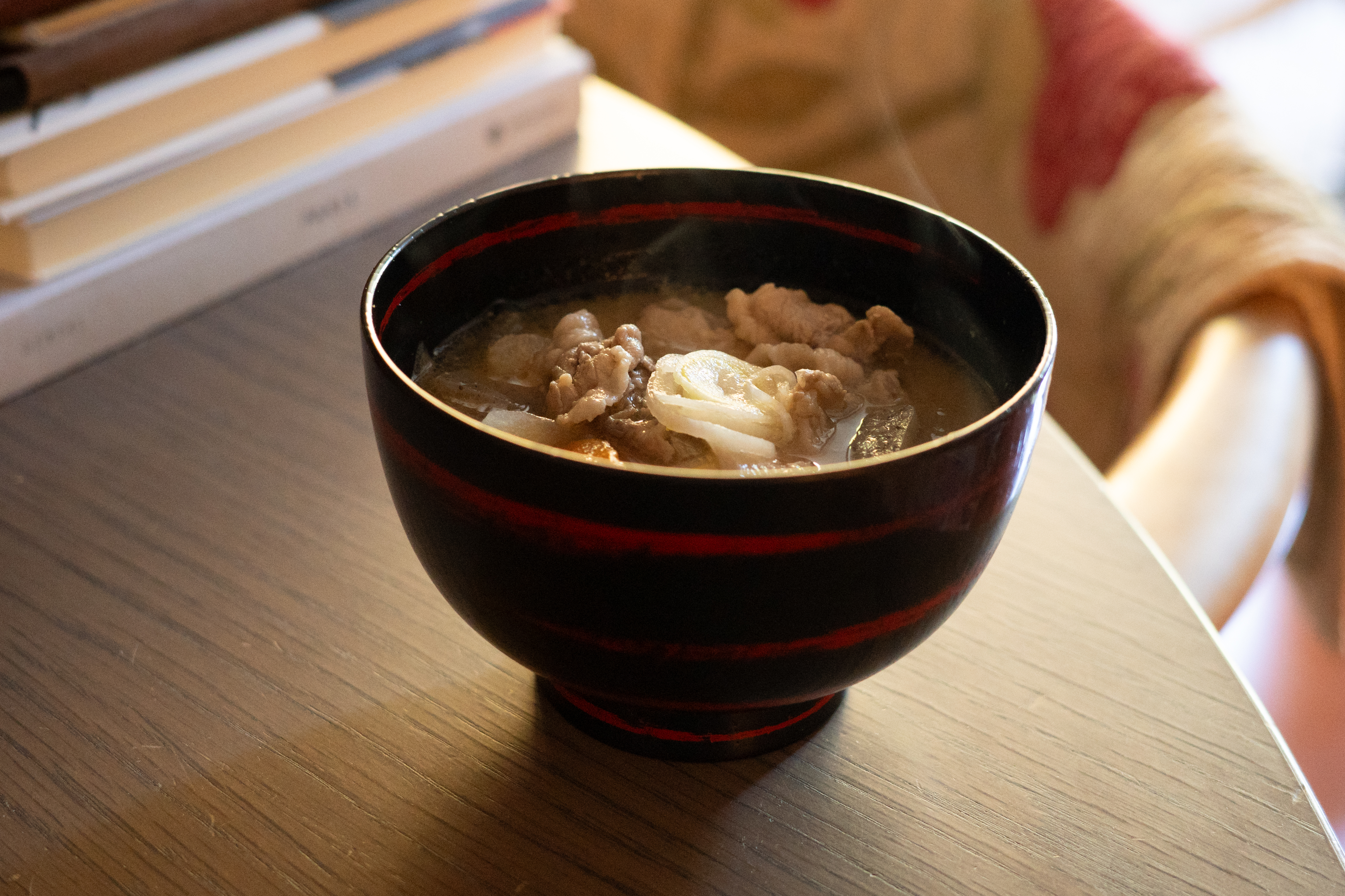 厨房からなんだか懐かしい匂いが漂ってきたので「いい匂いがする」と言うと、「豚汁を作ってるのよ。よかったら食べますか?」と女性は言った。